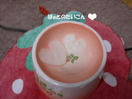だからママンからはぁとのカタチのだいこんをオヤツにもらったの。