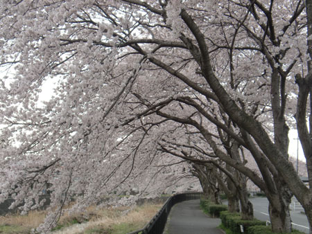 今日はちょっと曇り空なんだけど、サクラのトンネルなんだって。