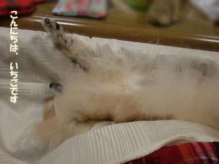 ママンのオヒザの上でカッコイイ形をして寝てみたの。
