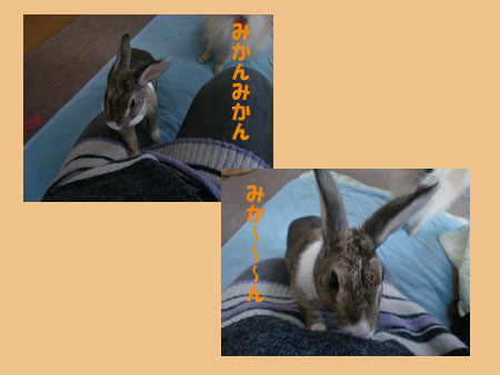 ママンがみかんのおすそ分けしてくれるのを待っていたの。