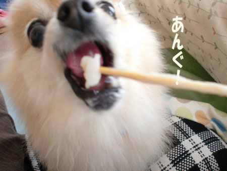 いちごちゃんが、お団子を食べている写真