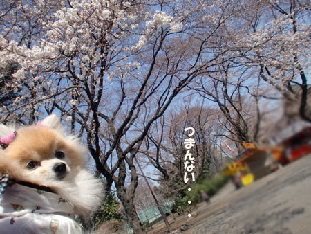 ママンはサクラを見るんだっていって、ずーっと上を見ていたの。