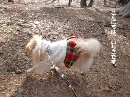 木がたくさんあって知らないニオイもたくさんあって楽しくお散歩しちゃったの。