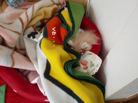 ちょっと寒い気がしたからもぐってみたの。