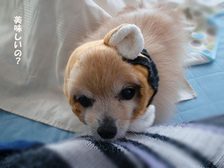 今日もトラ帽子を被りながらゴハンしてるの。