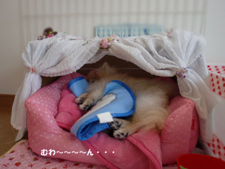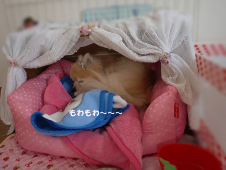 ベッドで寝ているいちごちゃん、