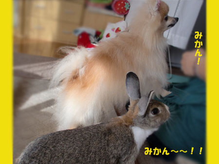病院からもどってきたママンにお留守番のごほうびにみかんをもらったの~。