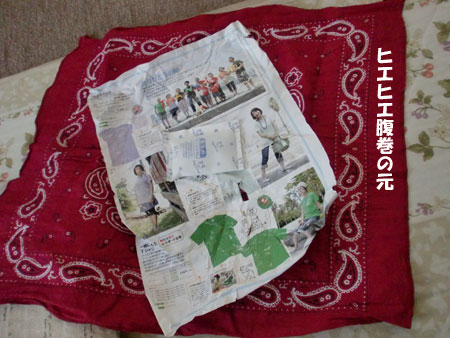 これをお腹に巻いてゴムでとめたら出来上がり。