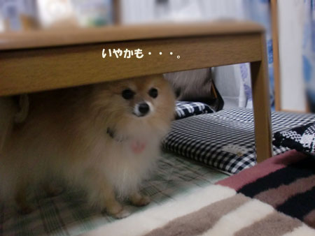 オヤツを食べた後テーブルに下にもぐっちゃいました。