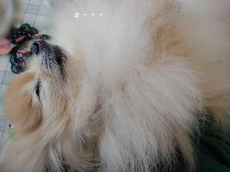 ぽぽちゃんは短い毛が抜けて刺さるとチト痛い~( ̄~ ̄*)