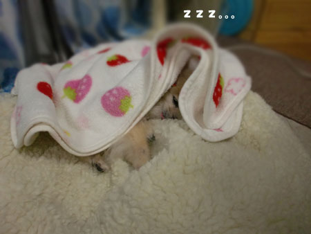 でね、ひんやりしてくるとママンが毛布を掛けてくれるの