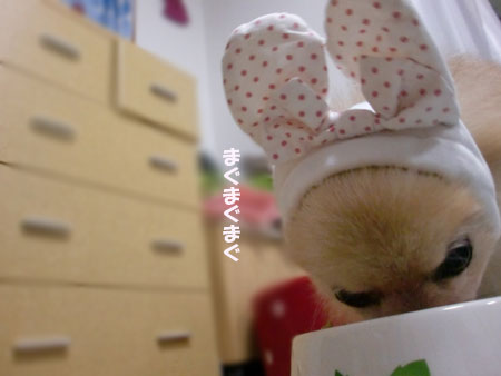 いちごちゃんの ご飯の時のお耳 最高に可愛いですね