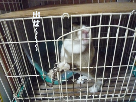 お部屋掃除の時に暴れだしたので、ちょっとケージに閉じ込めて
