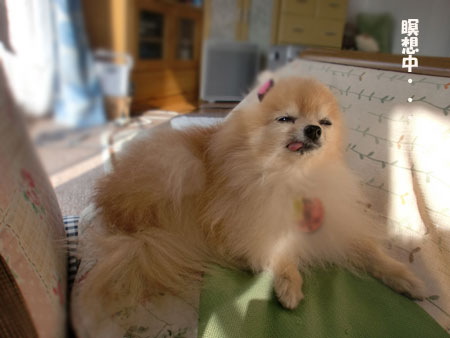 ・・・わたちゃんがくにくにしている間、いちごはゆっくり瞑想中なの。。。。