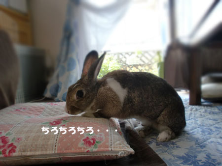 わたはキレイ好きだから、座布団のお掃除もしちゃうもんね。。