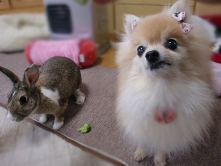 うさぎと張り合いブロッコリーを食べてました(^^)