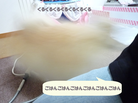 いちごは今度はくるくるくるくる回ってゴハンはやく~~を訴えるの。