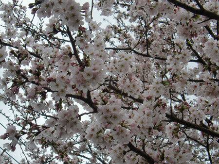 今日はちょっと曇り空なんだけど、サクラのトンネルなんだって。