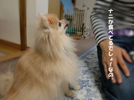 お兄ちゃんにお手手をさわらせてあげる代わりにオヤツをおねだりしてみたの。