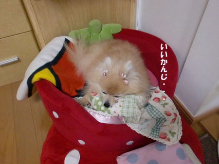 いちごはベットかふかふか座布団の上に行きます(*'ー'*)