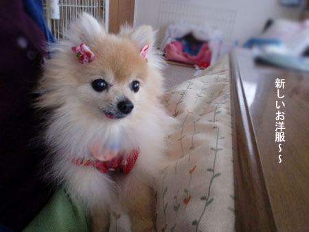 お家に戻ったらね、ママンがいちごに新しいお洋服を作ってくれたの。